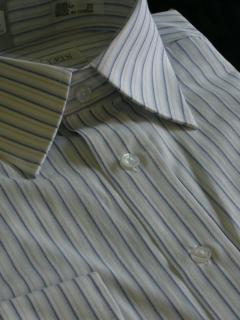 ■淡いブルーとイエロー系のストライプ。ビジネスシーンに最適です。